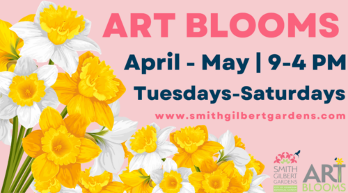 Fast forward to 2021- the first Art Blooms! The Gardens launched Art Blooms in the spring (April and May) to showcase the permanent collection. Thousands of daffodil bulbs and spring blooms were planted around some of the permanent pieces setting the stage for a colorful exhibit! In addition to the permanent sculpture collection, Art Blooms invited local and regional artists to be part of a temporary exhibit- just as Smith and Gilbert supported the arts. The first year created a great partnership with Kennesaw State University’s Master Craftsman program. Students toured the Gardens and designed artwork inspired by nature. The following year the Gardens received support by Georgia Council for the Arts and Cobb EMC Foundation to fund more art, and artists. Visitors now had the opportunity to see student pieces, professional pieces and collaborative work created with a partnership with Cobb County Schools Fine Arts department. The new initiative with Cobb County schools gave students a hands on experience with an artist to create a sculpture together. The piece is exhibited at the Gardens as part of Art Blooms and later installed permanently at the school as public art. This program continues to grow with new artists and different students each year!