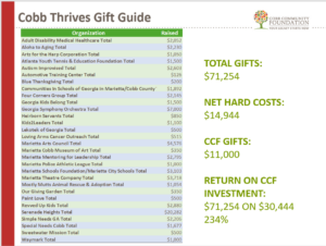 1) Cobb Thrives Gift Guide – A 24-page gift registry for nonprofits profiling their community impact and showcasing 3 specific funding requests that will support the operational and